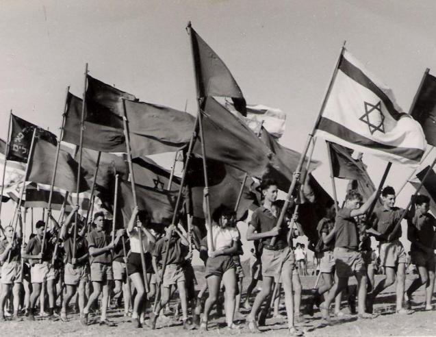 Festa num kibbutz (não identificado) em Julho de 1951, três anos após a criação de Israel