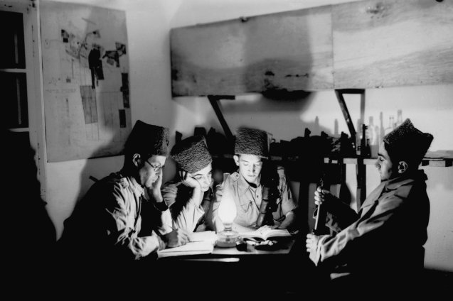 Pioneiros judeus e membros do Haganah – o movimento de resistência que precedeu o exército de Israel – num posto de vigilância no Kibbutz Givat Brenner, em 3 de Novembro de 1938, na Palestina do Mandato Britânico