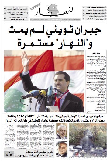 Gebran Tueni escreveu a Bashar al-assad [responsável pelo dossier libanês antes de assumir a presidência síria] – para dizer ao filho de Hafez que o Líbano quer ver restituída a sua soberania. Ao fazê-lo, irritou o seu pai, Ghassan Tueni (1926-2012), jornalista, deputado e ministro, várias vezes preso por enfurecer poderes.