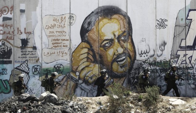 Marwan Barghouti, líder da Fatah e da Segunda Intifada, uma figura tão ou mais popular e carismática que Yasser Arafat. O seu rosto está pintado por toda a Palestina, incluindo no “muro do apartheid” que separa Israel dos territórios ocupados
