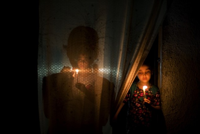 Crianças palestinianas na Faixa de Gaza com velas para poderem estudar. Os cortes de energia impostos por Israel deixam o território sem electricidade uma média de 20 horas por dia