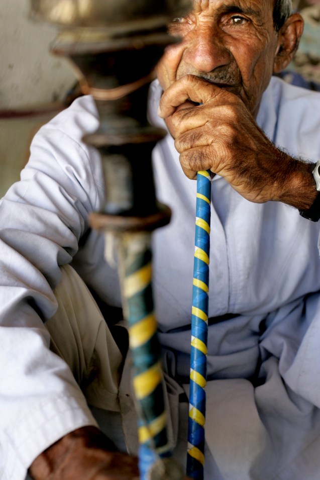 É quinta-feira de manhã, o Sol queima aos 44-46 graus. Mala’Allah Ali Hassan Kumzari, “mais ou menos 27 anos” de vida, assenta o corpo baixo e franzino nos tornozelos, e agarra-se ao leme de um pequeno bote azul.