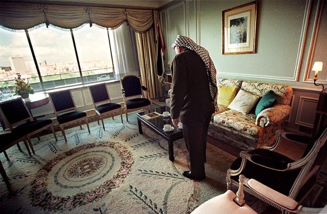 Antes de Ahmad Qurei falar com Sharon, Arafat ainda recusava deixar a Muqata. Para provar que era ele quem mandava, forçou o seu fotógrafo oficial a registar uma última imagem: em vez do uniforme verde, envergava um fato de treino azul.