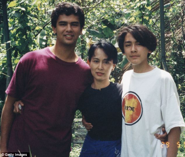 Suu Kyi com os seus dois filhos, Alexander (à esq.) e Kim, em Inglaterra, em 1988. Nem um nem outro têm nacionalidade birmanesa