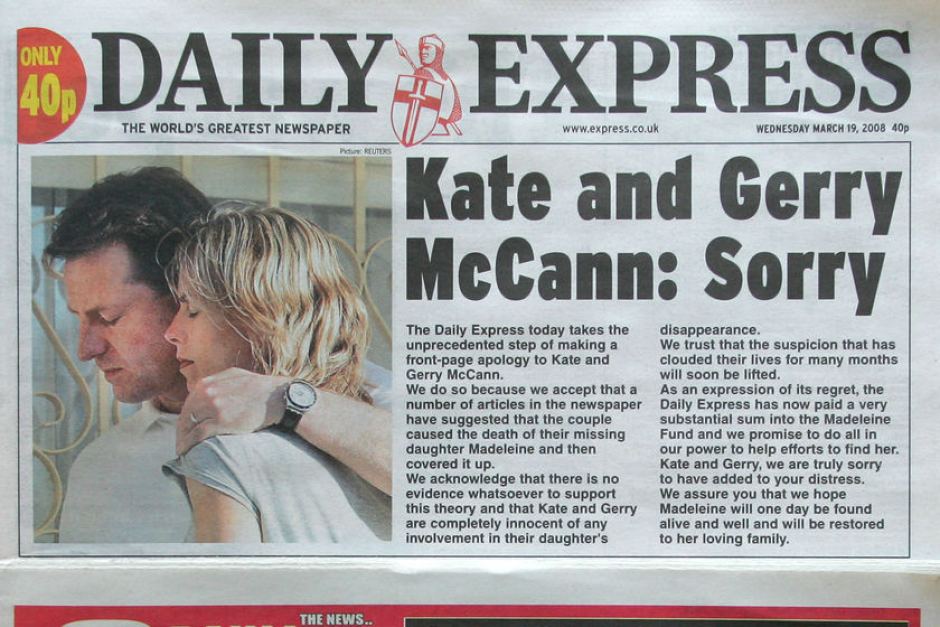 O pedido de desculpas do grupo Express ao casal McCann é inédito por aparecer simultaneamente nos quatro tablóides propriedade de Richard Desmond. Mas há precedentes: