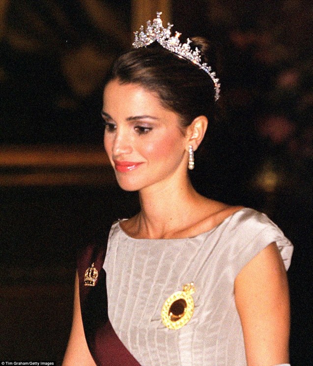Os súbditos jordanos ainda não parecem habituados ao ritmo de Rania, que viaja sozinha no seu blindado SUV, aparecendo sem aviso, vestida de YSL ou Chanel e com saltos altos, nas áreas mais remotas para dar “aulas de direitos humanos” (na foto, ela ostenta uma tiara da Cartier que antes pertenceu à rainha Alia, também ela palestiniana, mulher do rei Hussein, pai de Abdullah II
