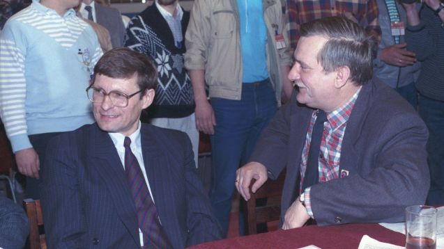 Leszek Balcerowicz (à esq.) foi membro do Partido Operário de Unidade Polaca (POUP) de 1969 até à proclamação da lei marcial em 1981, antes de se colocar ao serviço do Solidariedade, o sindicato fundado por Lech Walesa (à dir.)