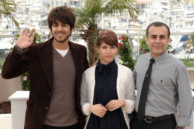 Negar Shaghaghi e Ashkan Koshanejad (os actores) com Bahman Ghobadi (o realizador), na estreia de No One Knows About The Persian Cats, no 62º Festival de Cannes (França)