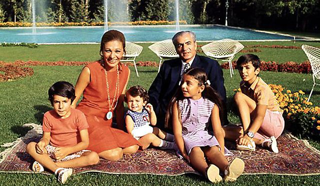 Mohammad Reza e a família, antes de ter sido forçado ao exílio após a revolução islâmica que derrubou a monarquia em 1979. Da esq. para a direita: Alireza, a imperatriz Farah, Leila (filha mais nova, que também se suicidou, em 2001), o “rei dos reis”, Fahranaz (filha mais velha) e Reza Pahlavi, o actual príncipe herdeiro