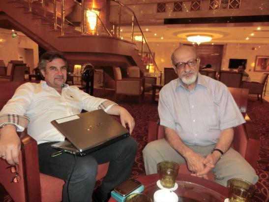 Haitham al-Maleh, mais de 40 anos em luta contra os Assad – e o seu filho Iyas al-Maleh (esq.), líderes da oposição, durante uma passagem pelo Egipto, em 2011