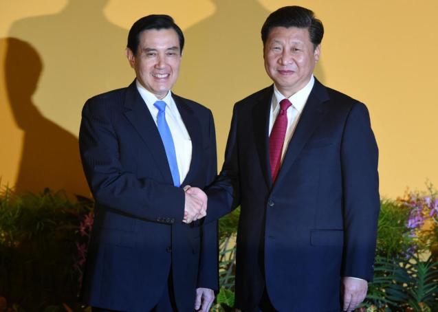 Ma Ying-jeou, do Kuomintang (aqui com o presidente chinês, Xi Jinping, antes de um encontro no Sangri-La Hotel, em Singapura, em 7 de Novembro de 2015), tudo fez para aproximar Taipé de Pequim até ao fim do seu mandato em 2016