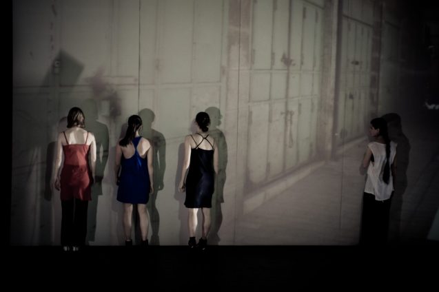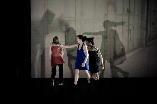 No palco, ora vazio e silencioso, ora iluminado por fotos de prédios esventrados em guerras e sonorizado com o que parece ser tiros ou explosões, as três bailarinas disputam o espaço. Prostram-se, rastejam, levantam-se, contorcem-se, confrontam-se, entrelaçam-se, separam-se, tocam-se, caminham, correm.