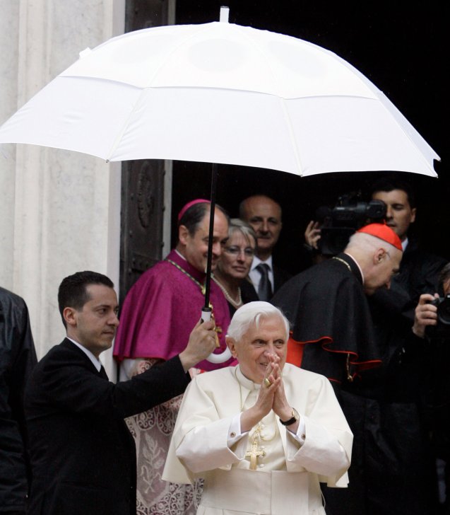 Paolo Gabriele (na foto, com o guarda-chuva), o camareiro de Bento XVI, era como “uma sombra, atento a cada necessidade, a cada suspiro”, que seguia o Papa em todas as viagens pelo mundo. Conhecia bem a rotina diária no terceiro piso do Palácio Apostólico. Pediu perdão por trair confiança e foi indultado em 2013