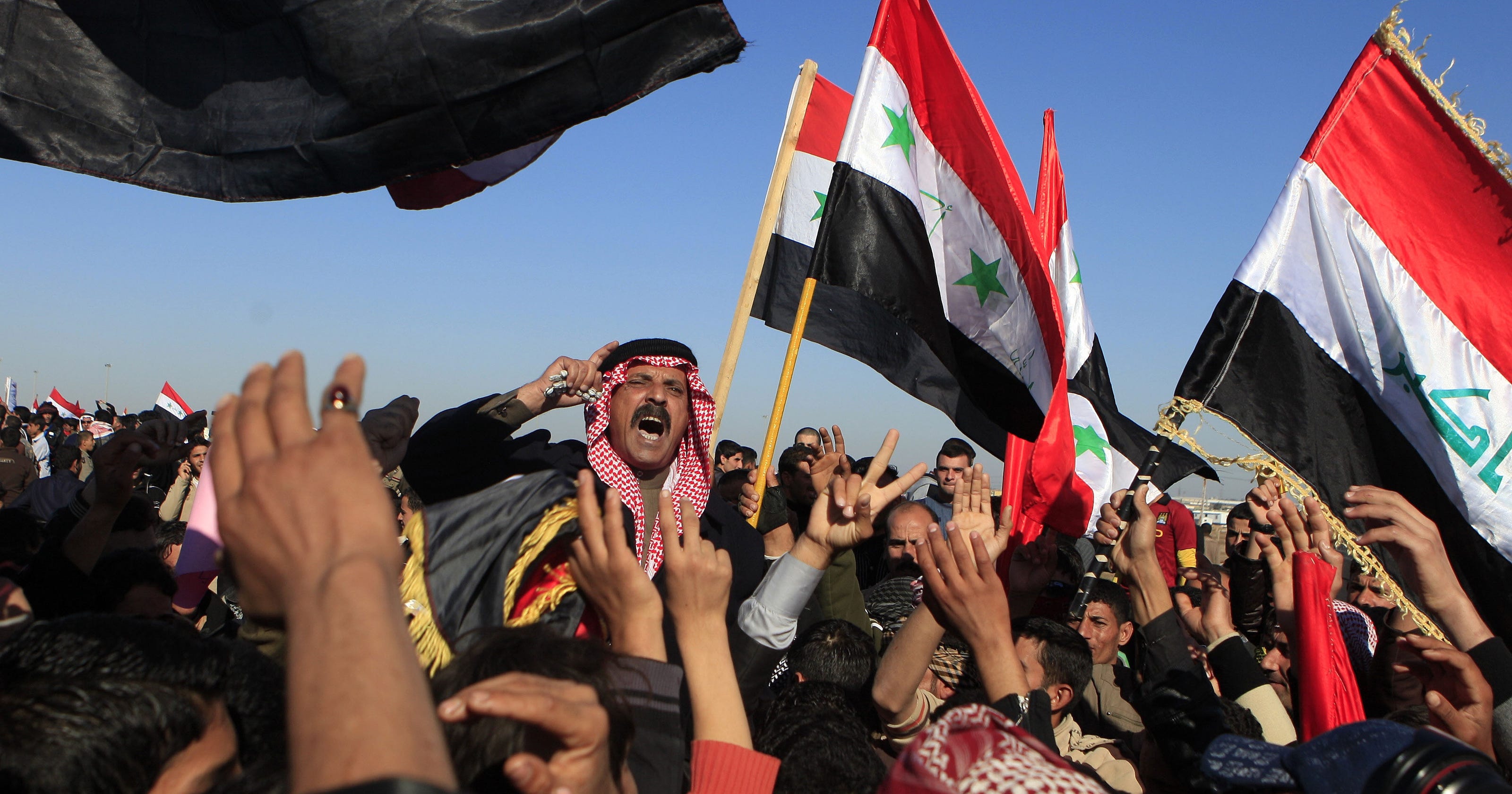 Em 2012, na sequência das “primaveras árabes” na Tunísia e no Egipto, milhares de iraquianos sunitas vieram para as ruas (aqui na cidade de Falluja) protestar contra o “governo sectário”, de maioria xiita, de Nouri al-Maliki