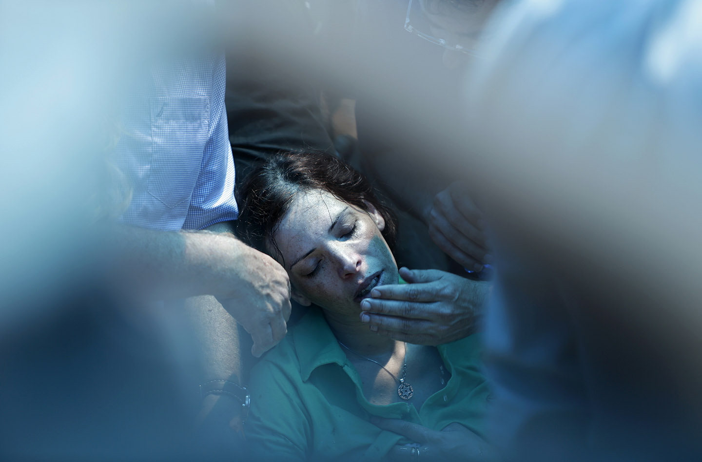 A irmã do soldado israelita Tsafrir Bar-Or, morto em Gaza a 20 de Julho de 2014, chora a sua perda durante o funeral em Holon