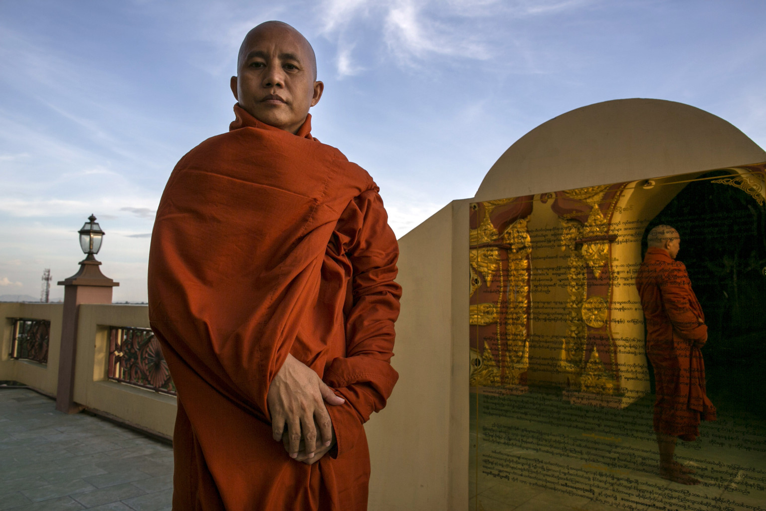 Buddhist militant leader Ashin Wirathu poses inside the Masoeyein monastery on June 30, 2013 in Mandalay, Burma.Wirathu is the leader of the Buddhist extremist movement in Myanmar, known as 969. He was once jailed for anti-Muslim violence and also has called himself the “Burmese bin Laden.” Buddhist leader Wirathu resides at the Masoeyein monastery where over 2,800 monks live, it is one of the largest in Mandalay, Burma’s second largest city
