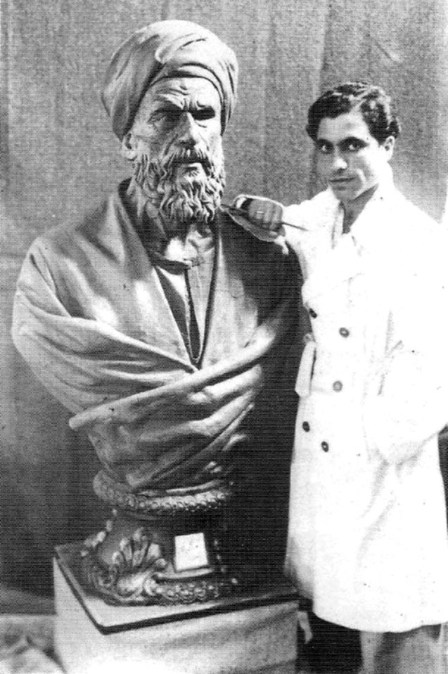 Em 2013, o busto de Al-Ma’arri, um dos maiores poetas clássicos árabes, orgulhosamente ateu, foi “decapitado” por jihadistas da Frente al-Nusra, ou al-Qaeda no Levante, cujo desígnio é transformar a Síria num Estado islâmico. (Na foto, em 1944, a estátua intacta e o seu escultor, Fathi Muhammad)