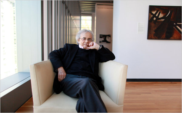 I am invited to sit down in one of the sofas of a living room packed with hundreds of books. The walls are covered with paintings, his own and of personal friends. Magazines, letters, papers, pens and pencils, and a box of baklava, traditional Turkish sweets, are randomly displayed on a table in front of host and guest.