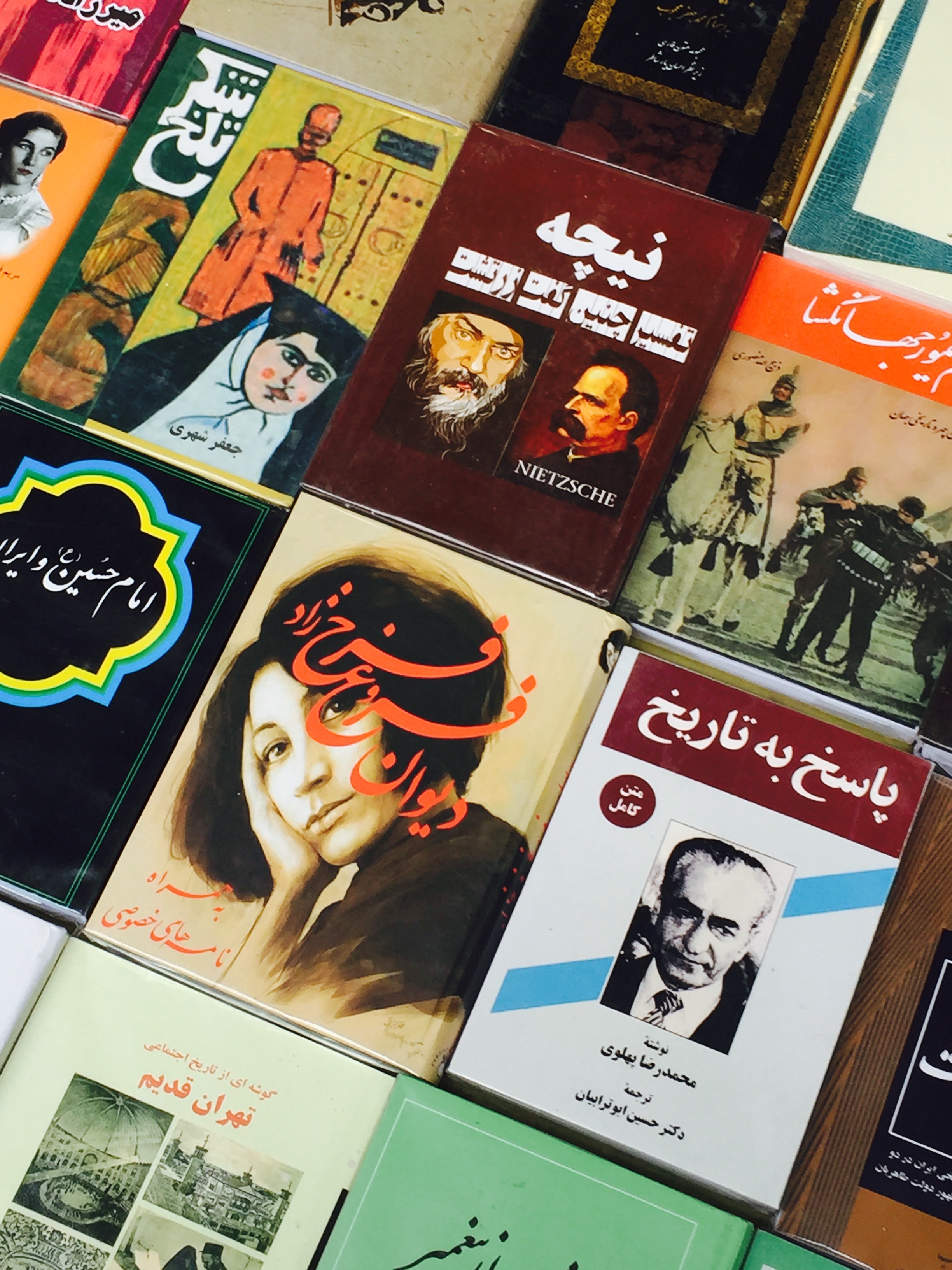 Na sua banca improvisada, num passeio onde se cruzam mullahs e mulheres com coloridos roosaris (lenços) deslizando sobre justas roopoosh (túnicas), os Pahlavi estão em destaque. Mas não só.