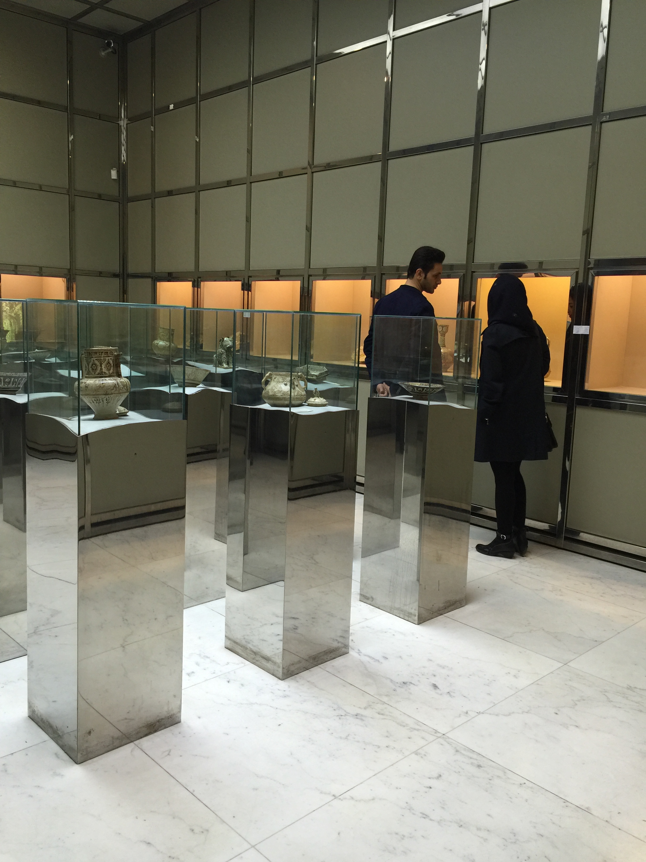 O Museu do Vidro e Cerâmica em Teerão funciona desde 1976 num edifício da era Qajar que foi em tempos a Embaixada do Egipto. A arquitectura é belíssima, da escadaria de madeira aos tectos trabalhados em gesso. Alguns dos objectos expostos em galerias organizadas cronologicamente remontam ao segundo milénio a.C. e contam uma parte da história do Irão