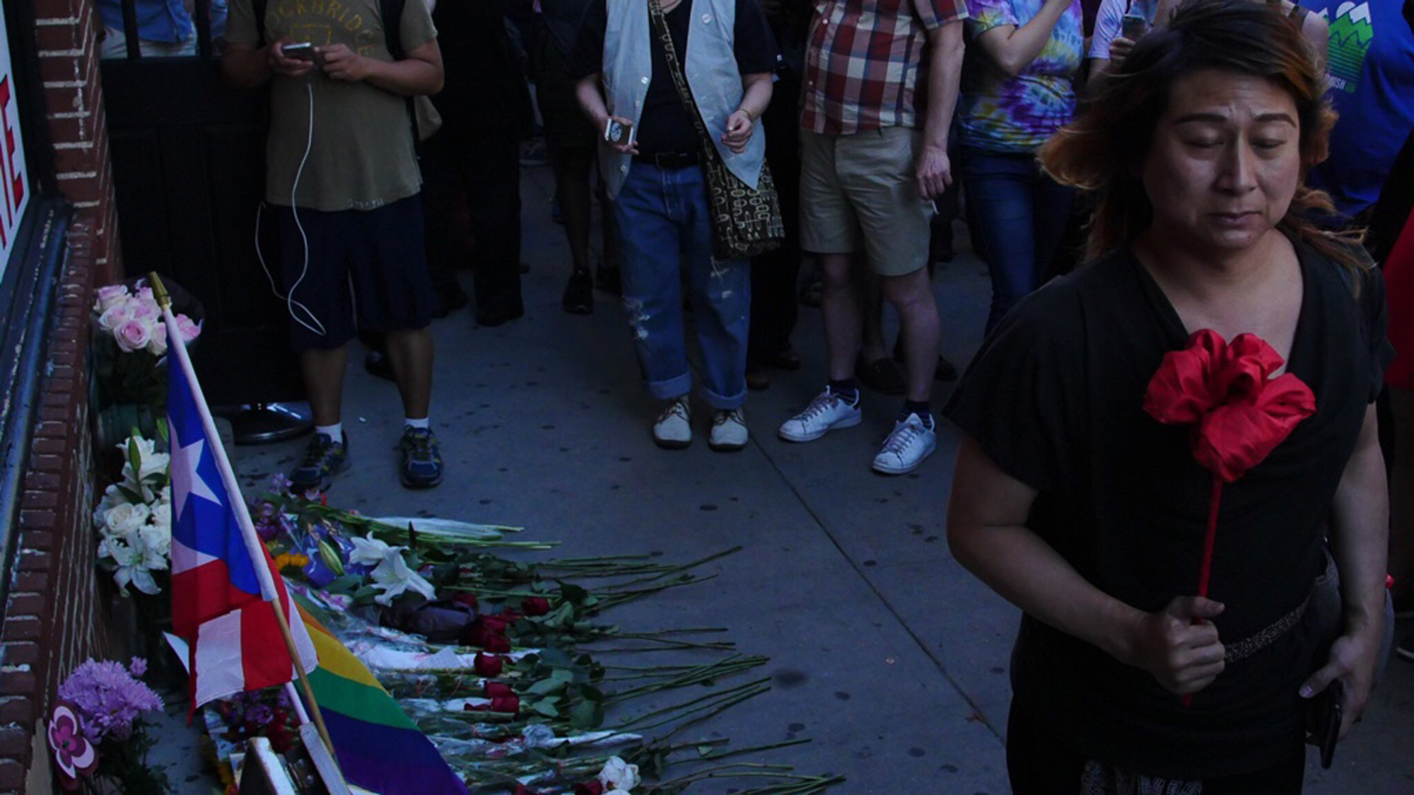Mourners at New York’s iconic Stonewall Inn remember LGBT victims of the Orlando shooting