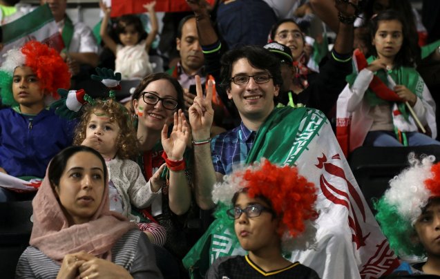 Uma família iraniana apoia a selecção nacional no jogo contra o Qatar durante a fase de apuramento para o Campeonato do Mundo de 2018