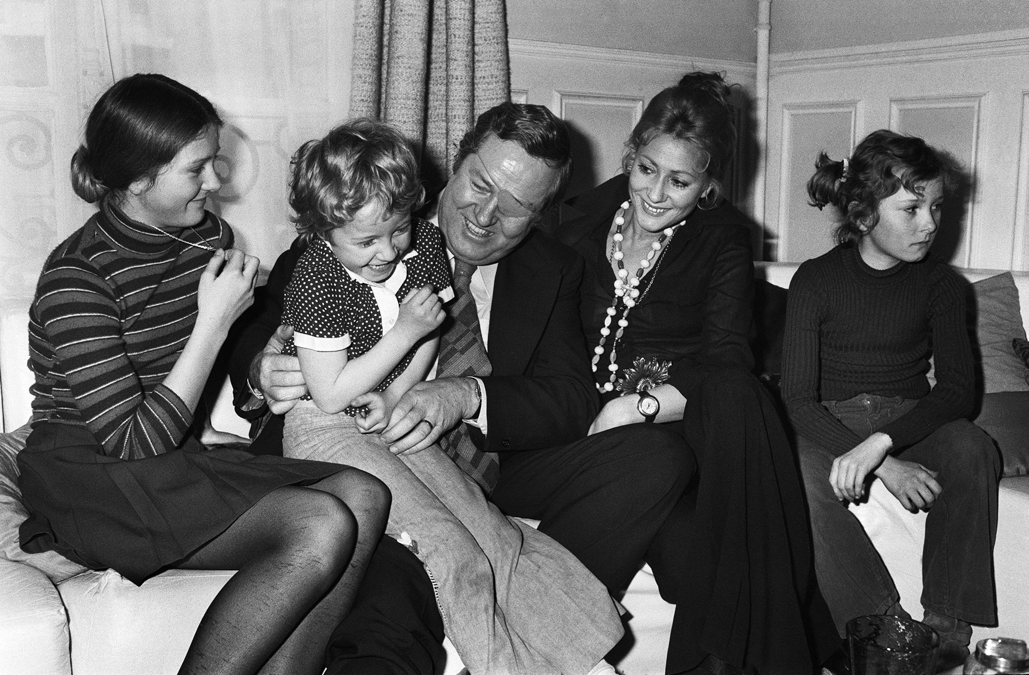 Jean-Marie Le Pen brinca com Marine no apartamento parisiense da família, em 1974. A seu lado, a primeira mulher, Pierrette, e as outras duas filhas do casal: Marie-Caroline (esq.) e Yann