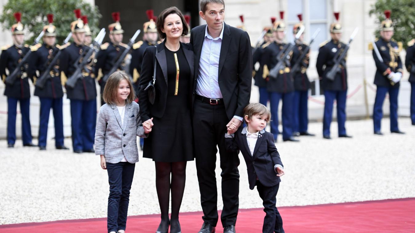 Sébastien Auzière, filho mais velho de Brigitte, a mulher, Christelle, e os filhos, Camille e Paul