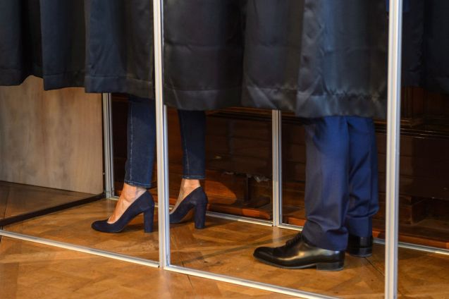 Brigitte e Emmanuel votam na câmara municipal de Touquet, área da residência familiar, na primeira volta das legislativas, em Junho