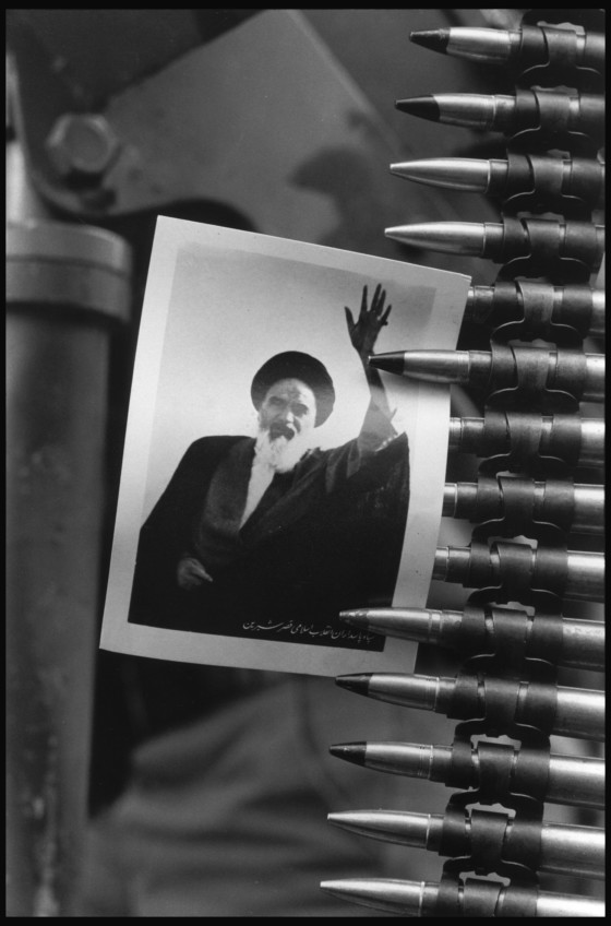 Teerão, 1979: Uma mulher envergando o chador e erguendo uma metralhadora Uzi controla uma manifestação contra o Iraque de Saddam Hussein, que, em 1980, iniciou uma guerra que só terminou oito anos depois. No cartaz lê-se: “Os amigos de ontem são os inimigos de hoje”