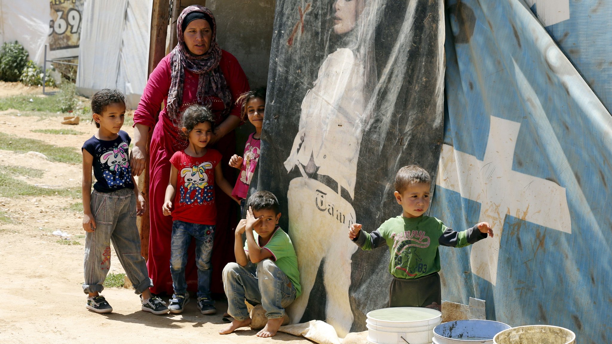 Uma família de refugiados numa tenda em Saadnayel, no Vale de Bekaa, Líbano. A ONU estima que cerca de cinco milhões de pessoas fugiram da Síria desde o início da guerra em 2011