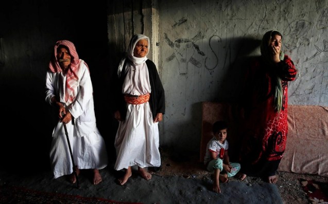 Famílias yazidis que fugiram de Sinjar aguardam por ajuda num edifício abandonado que, em 2014, antes da derrota do Daesh, usavam como residência principal, em Dohuk, região autónoma curda no norte do Iraque