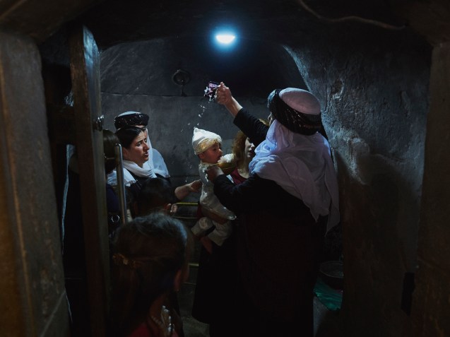 Um baptismo yazidi no templo sagrado de Lalish, no norte do Iraque