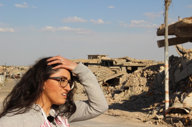 Pari Ibrahim, em 2016, na cidade de Sinjar, destruída pelo Daesh
