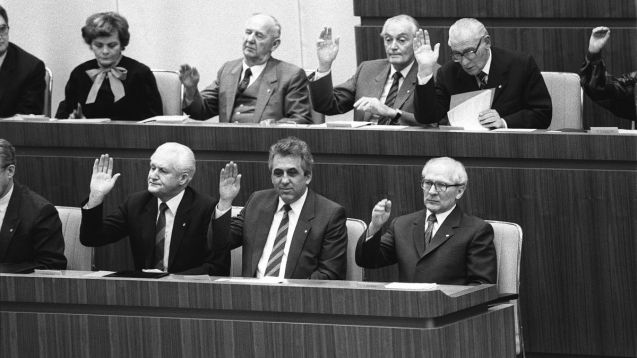 - 18 de outubro: Erich Honecker demite-se de secretário-geral do Partido da Unidade Socialista da RDA e sucede-lhe Egon Krenz. Nas ruas, milhares de manifestantes clamam por reformas democráticas. Em 1991, na sequência da reunificação alemã, Honecker pede asilo político na Embaixada do Chile em Moscovo, mas é extraditado no ano seguinte e julgado pelos crimes do regime. O processo é interrompido, porque a sua saúde é frágil, e ele regressa ao exílio chileno, onde morre de cancro, em 1994;