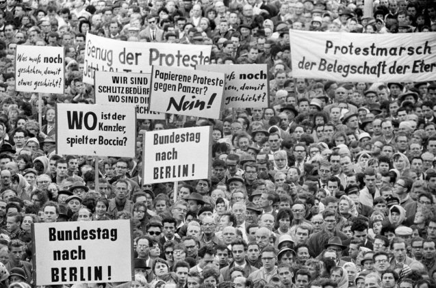 Agosto de 1961: Manifestação contra a construção do Muro de Berlim