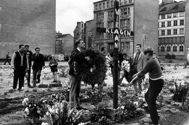 1962: Homenagem, em Berlim Ocidental, a Peter Fechter, baleado por guardas fronteiriços da RDA quando tentou saltar o muro