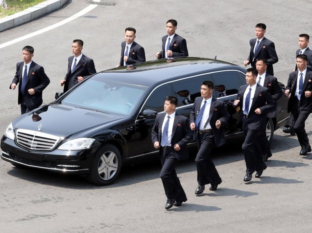 Foi no filme In the Line of Fire, de Clint Eastwood, sobre um agente que protege John F. Kennedy, que Kim Jong-un se inspirou para pôr os guarda-costas a correr ao lado e atrás da sua limusine blindada”Mercedes-Baybach S600 Pullman Guard, de 16 milhões de dólares