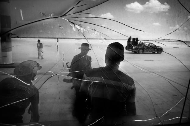 Rebeldes líbios depois de assumirem o controlo do aeroporto de Sirte em confrontos com forças rivais