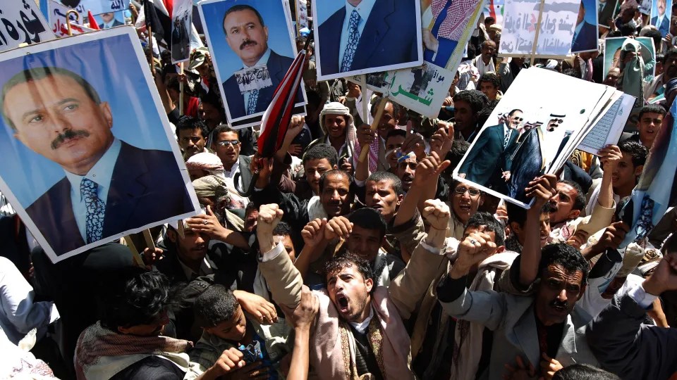 2011: A “Primavera Árabe” chega ao Iémen. Em janeiro, o povo sai à rua para exigir o fim de 33 anos de regime de Saleh. Este promete não se recandidatar, mas os protestos alastram. A repressão causa cerca de dois mil mortos. Em Abril, o partido de Saleh, Congresso Geral do Povo, concorda em ceder o poder, mas o presidente não. A influente federação tribal Hashid e vários comandantes militares decidem juntar-se à oposição. Confrontos começam em Sanaa, a capital. Em Junho, Saleh é gravemente ferido num atentado bombista e vai tratar-se à Arábia Saudita. Em Setembro, regressa ao palácio presidencial, mas só em Novembro, assina o acordo de transferência de poder. Sucede-lhe o “número dois”, Abd Rabbuh Mansour Hadi, que forma um “governo de unidade” e, dois anos depois, vence eleições presidenciais, sem adversários, para dois anos de mandato.