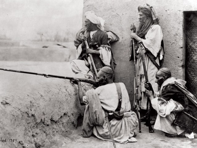 1878-1879: Início da II Guerra Anglo-Afegã (foto), depois de o emir Sher Ali Khan (1825-1879), filho de Dost Mohammad, ter reforçado os laços com a Rússia. Com o avanço das forças britânicas em direcção a Cabul, Sher Ali abandona a cidade e pede asilo à Rússia. Deixa o trono ao filho Mohammad Yakub Khan (1849-1923), que assina o Tratado de Gandamak, oferecendo aos britânicos o controlo da política externa afegã. O Afeganistão é oficialmente referido, pela primeira vez, como um Estado e não apenas uma região. Em 1879, uma revolta contra este acordo força Yaqub Khan a abdicar.