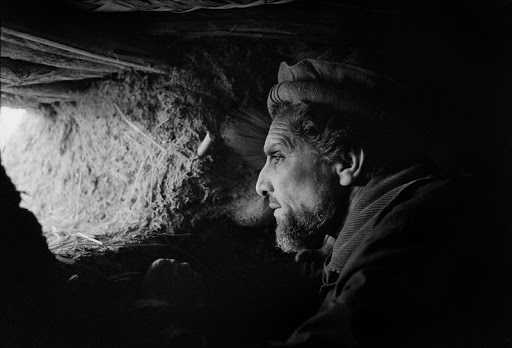 1992: Em Janeiro, a URSS cessa toda a ajuda a Najibullah. A outrora poderosa Força Aérea afegã deixa de poder voar por falta de combustível. Com apoio do Paquistão, os mujahedin vão conquistando várias cidades. Ataques terroristas multiplicam-se em Cabul e semeando o terror em Cabul. Em 14 de Abril, Najibullah é forçado a demitir-se. No dia 16, facções dos mujahedin – excepto o grupo de Hekmatyar – assinam o “Acordo de Peshawar” que cria o novo Estado Islâmico do Afeganistão. Rivalidades paralisam o novo governo interino, cujo ministro da Defesa é Ahmed Shah Massoud (na foto, a inspeccionar as linhas da frente em front Dasht-e-Qala, província de Takhar). Na manhã de 17, Najibullah tenta fugir do país, esperando asilo na Índia onde já se encontram a mulher e as filhas, mas é-lhe negada entrada no aeroporto de Cabul, controlado por um antigo aliado, o miliciano afegão-uzbeque Abdul Rashid Dostum, agora no campo de Massoud. Najibullah é obrigado a refugiar-se no quartel-general da ONU em Cabul;